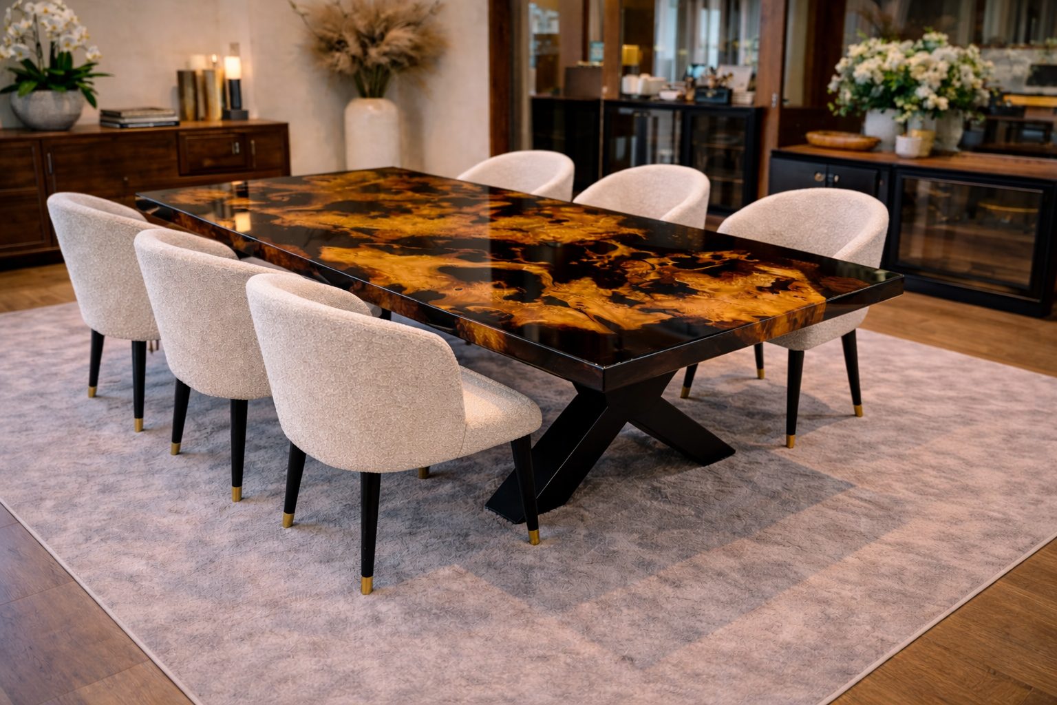 De combinatie van het historische hout en heldere epoxy maakt deze tafel volledig uniek en een echte blikvanger in elk interieur.