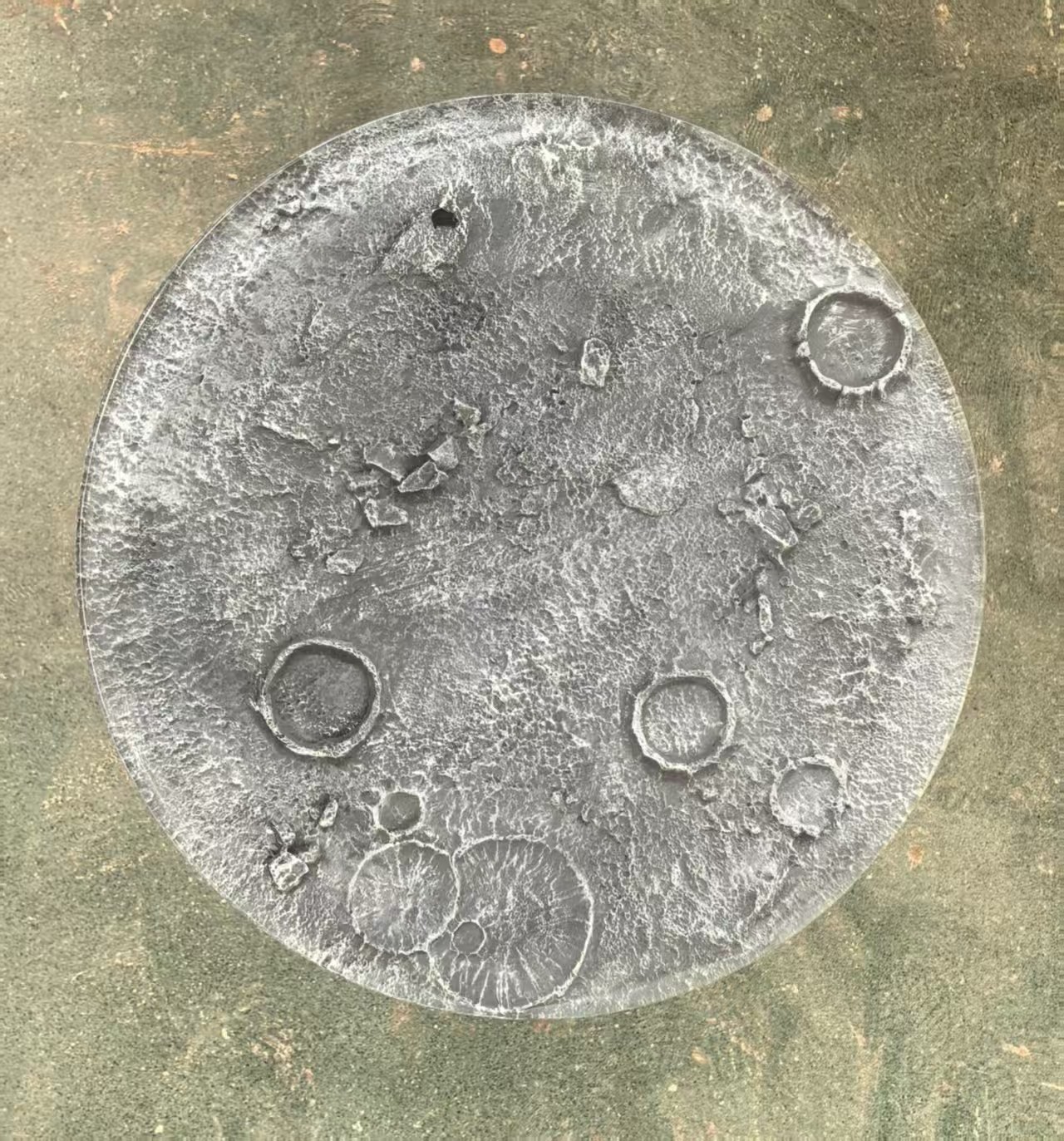 Deze bijzondere salontafel is volledig gemaakt van pure resin en heeft een unieke uitstraling die doet denken aan het oppervlak van de maan. De structuur, diepte en lichte kleurnuances geven de tafel een bijna buitenaards karakter, waardoor hij direct de aandacht trekt in elke ruimte.